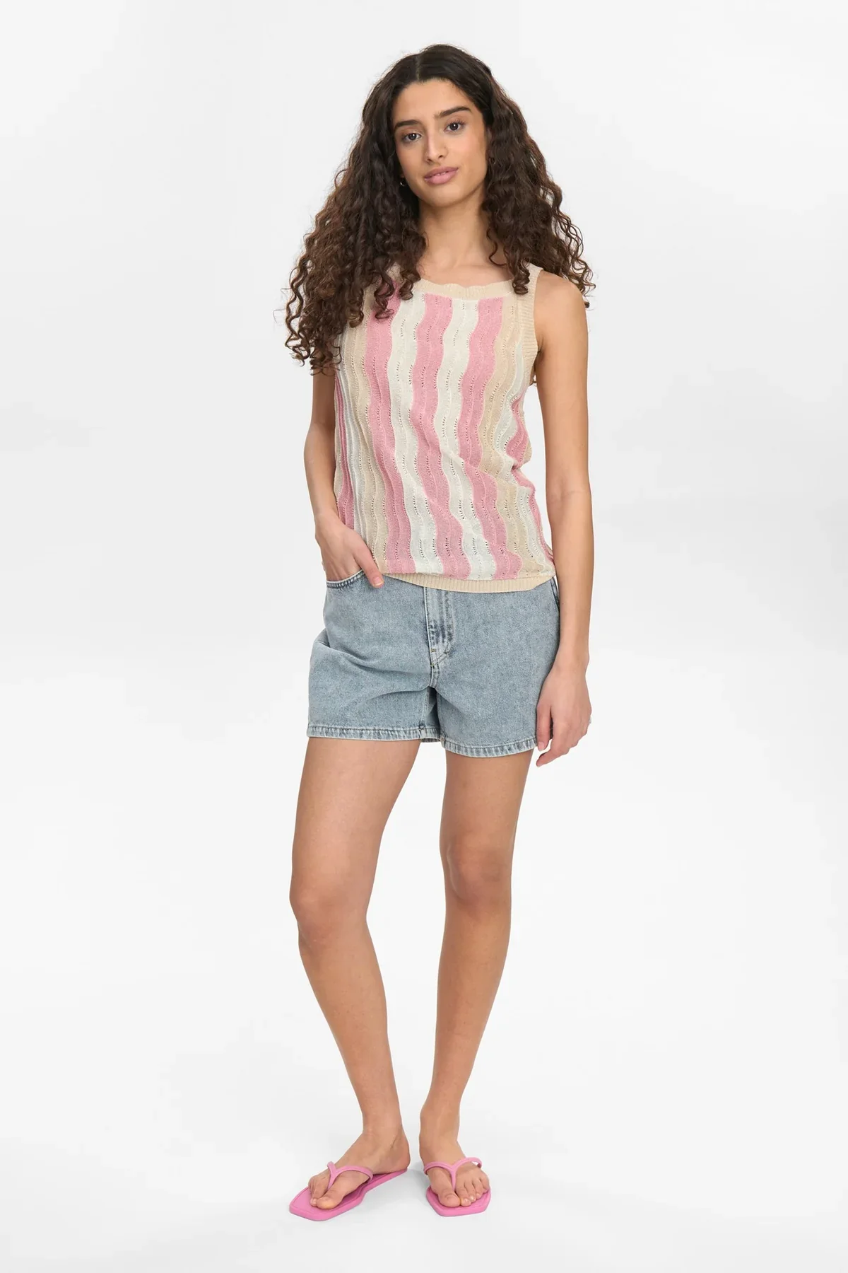 This Numph Kiba Top combines trendy metallic shine with bright colors to create a versatile and stylish option.